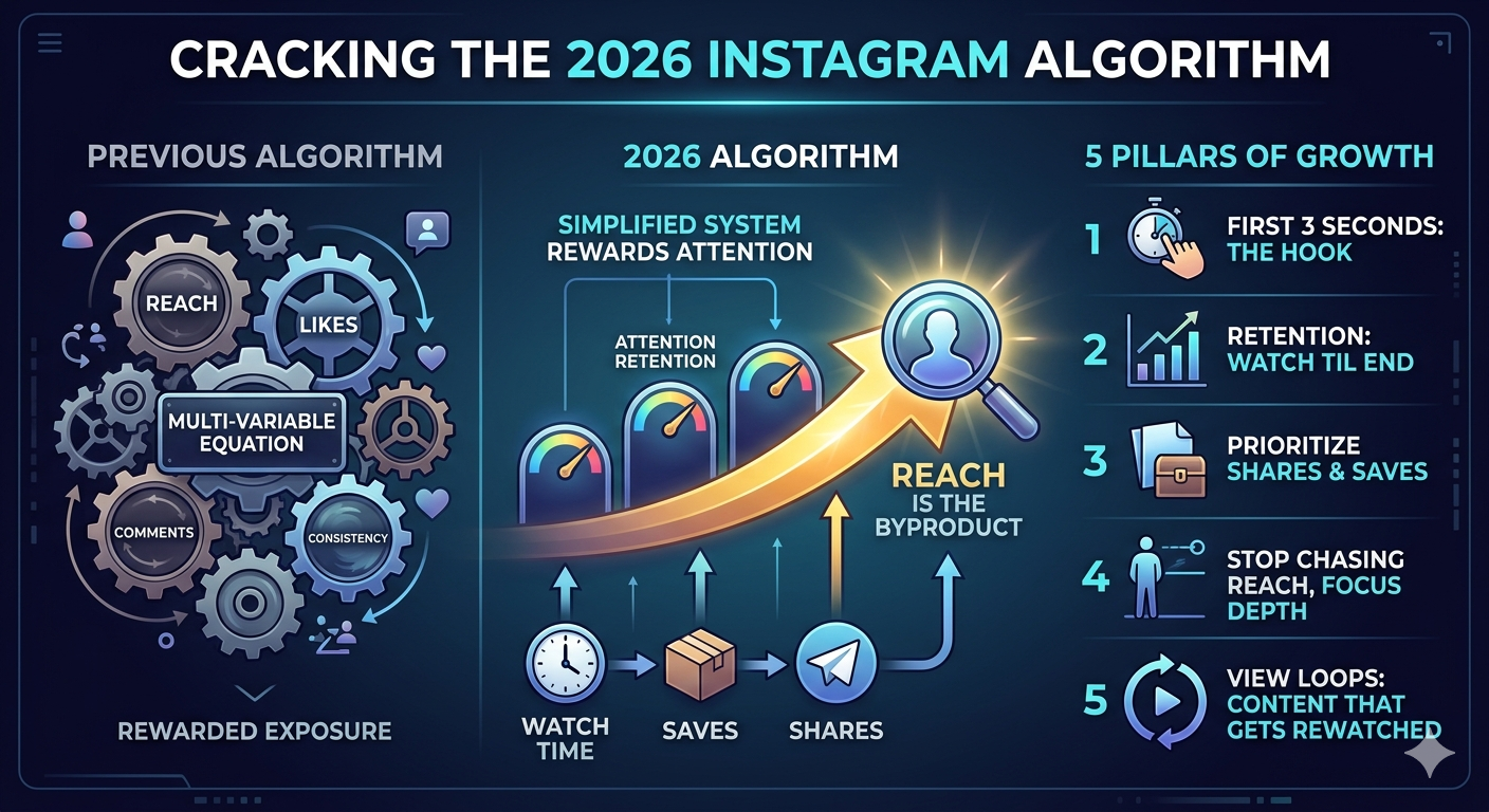 For years, creators treated Instagram’s algorithm like an unpredictable “black box,” chasing likes, shares, and arbitrary metrics. In 2026, that illusion has finally ended. The algorithm isn’t more complicated—it’s simpler than ever. Most creators continue to use outdated tactics, missing the real signal: user attention and retention.